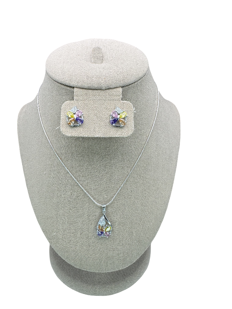 Multicolor Gemstone Teardrop Butterfly Necklace and Earring Set