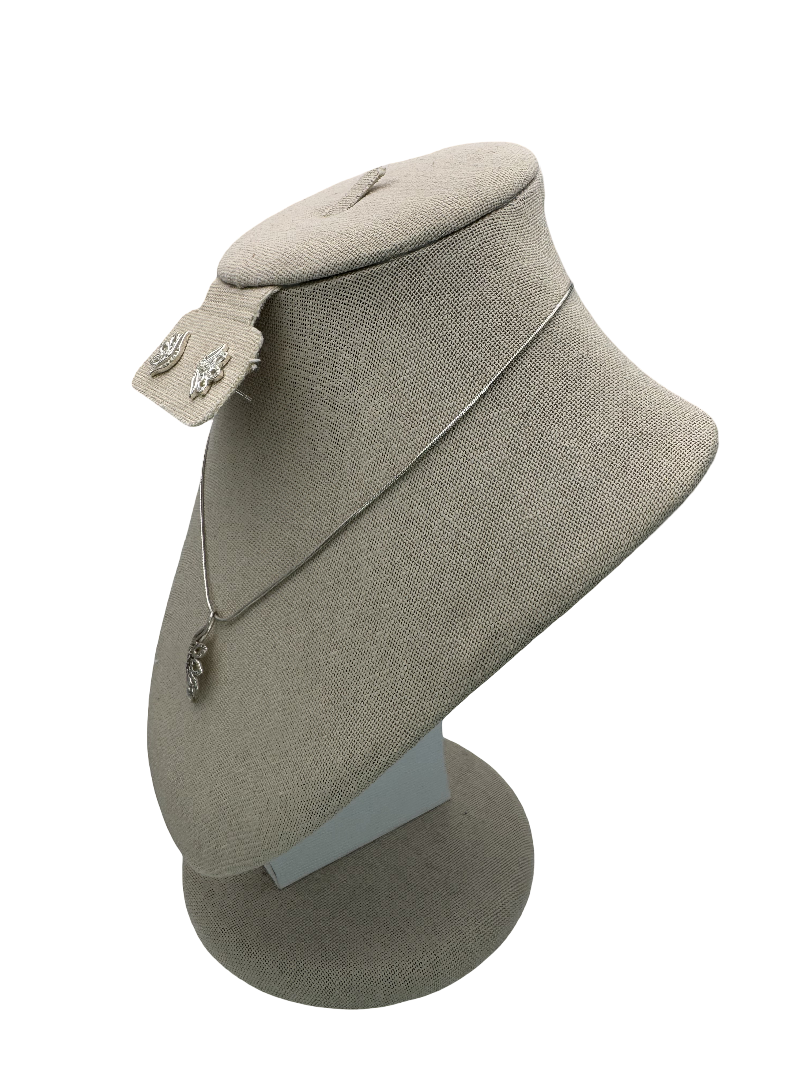 Silver Crystal Dove Pendant Necklace and Earrings Set