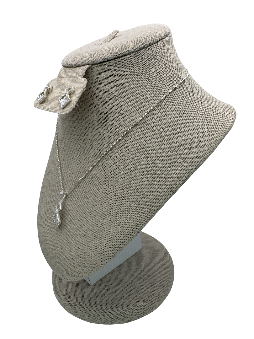 The Silver Geometric Pendant Necklace and Earrings Set by Ellyash is a beautifully crafted jewelry set made of sterling silver. The set includes a pendant necklace and earrings, both adjustable in size to fit comfortably. The geometric design in silver color makes it a versatile and stylish accessory suitable for various occasions such as Mother's Day, weddings, anniversaries, birthdays, and even Valentine's Day. Crafted with a metal purity of 925, this set is a perfect gift for loved ones, adding a touch of elegance to any outfit.
