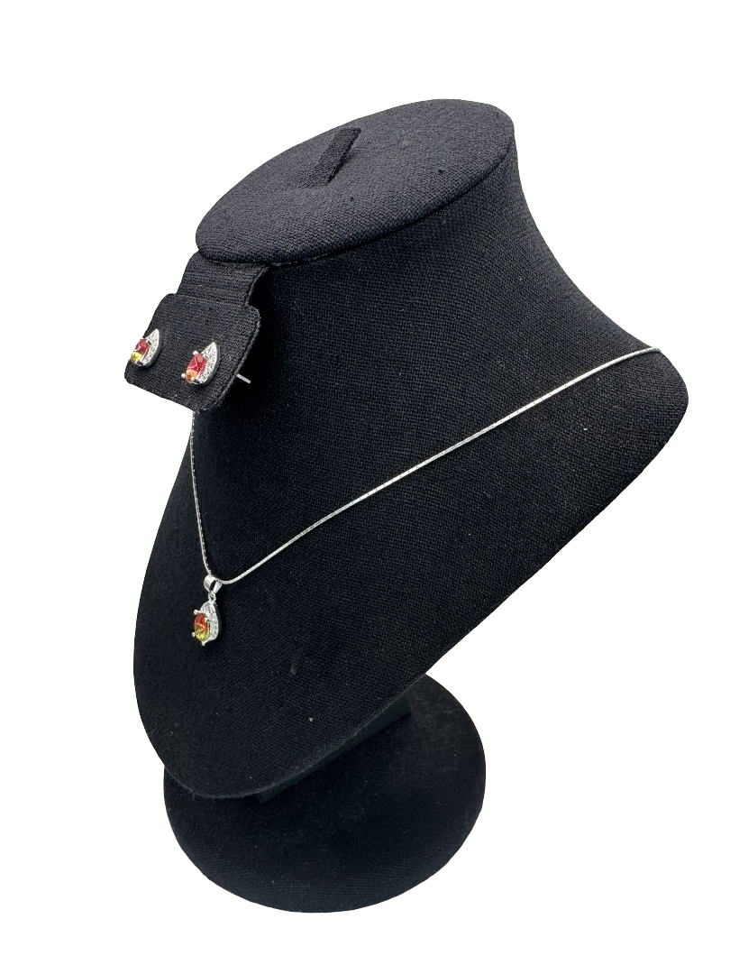 Sterling Silver Watermelon Gemstone Necklace Earrings Set